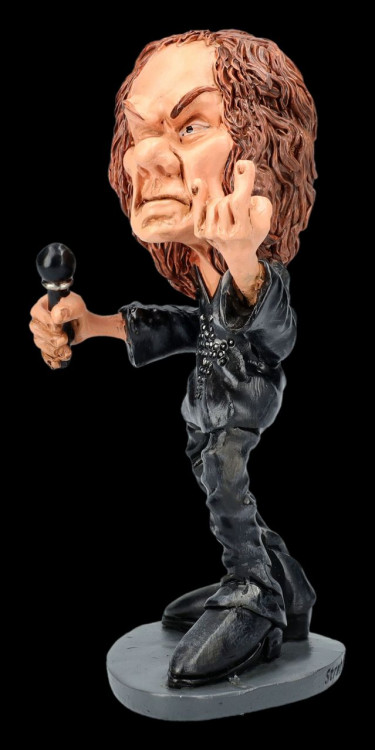 Komická soška z pryskyřice zpěváka slavné kapely.