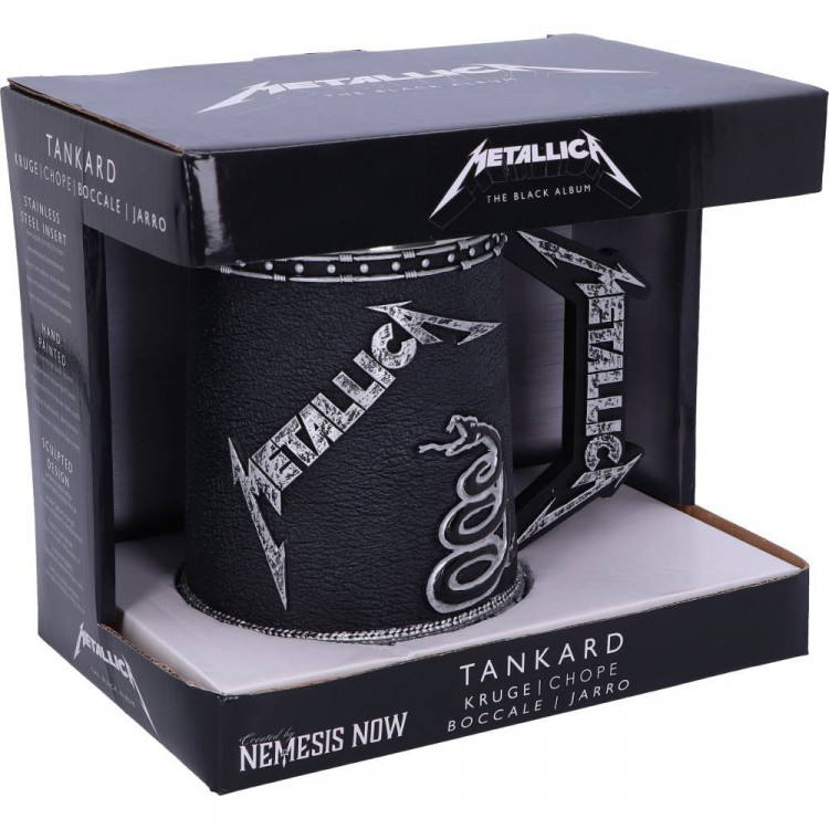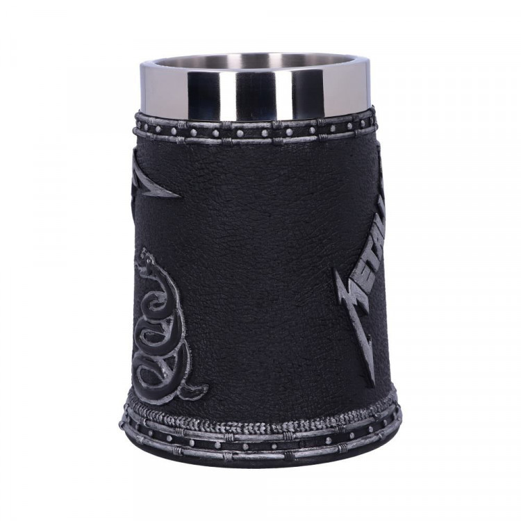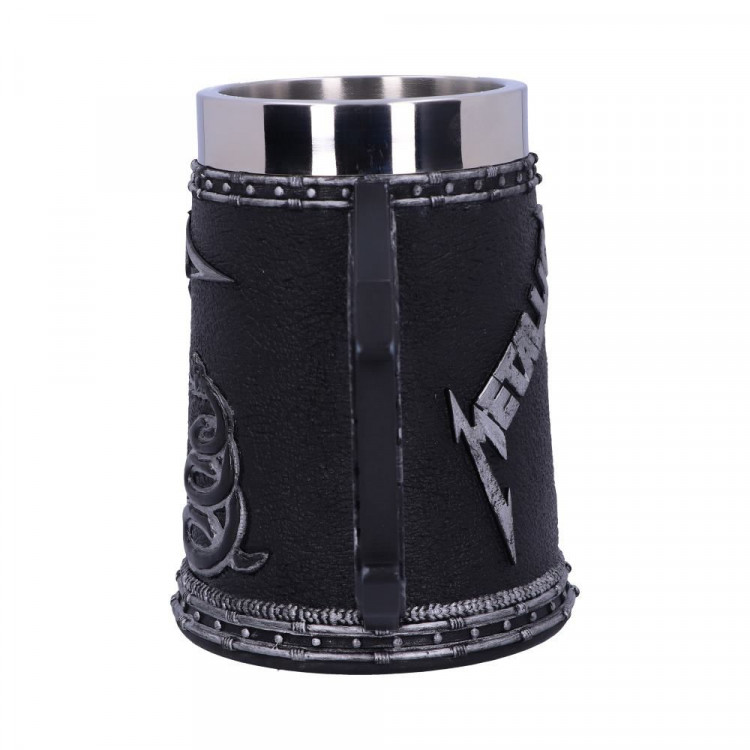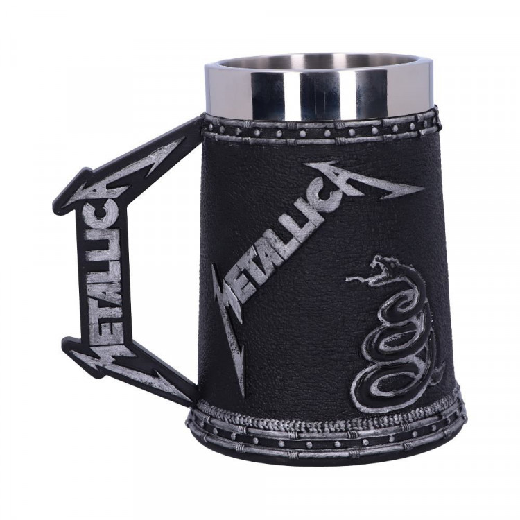 Masivní korbel z pryskyřice s logem kapely METALLICA. Ručně malováno. Nerezový střed lze vyndat a umýt v myčce.