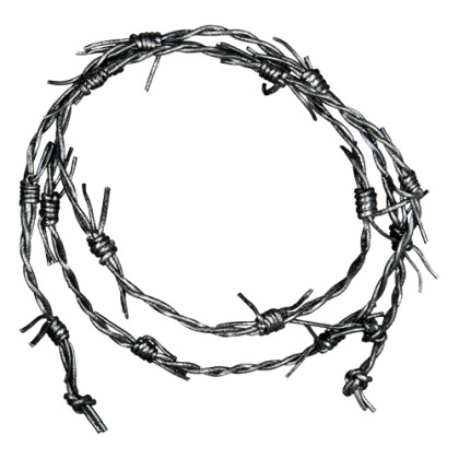 Kožený náramek, nebo obojek z kůže ve tvaru ostnatého drátu. Jednoduše ho omotáte kolem ruky nebo krku a zavážete na uzel. Přebytečnou kůži lze snadno ustřihnout.