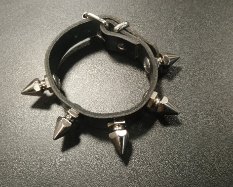 Kožený náramek z kvalitní pravé anglické kůže s lesklým povrchem. Hroty jsou šroubovací a dají se kombinovat s jinými hroty z naší nabídky. Je však potřeba občas kontrolovat utažení, aby nedošlo ke ztrátě.
