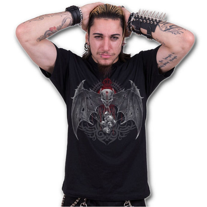 Pánské tričko s velmi profesionálním potiskem firmy Spiral Direct, která již přes třicet let zabývá potiskem merche s motivy, jako jsou lebky, draci, vlci, kočky, motorky, vikingové, metalové kapely, filmy.