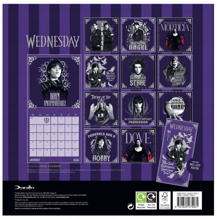 Wednesday - Nástěnný kalendář 2026. Oficiální produkt.