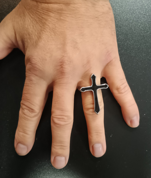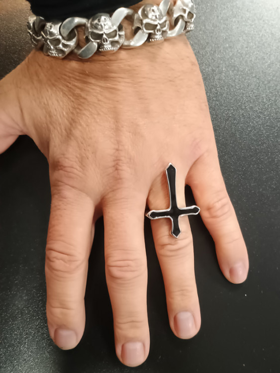 OCELOVÝ PRSTEN SABBATH BLACK CROSS