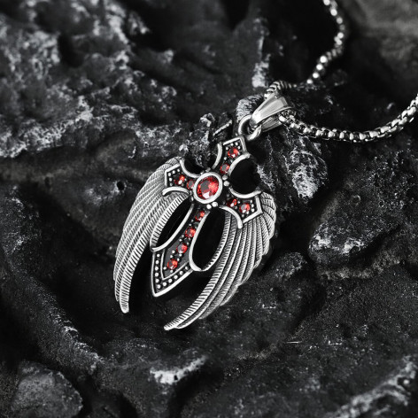 Přívěsek chirurgická ocel Fallen Angel Wings RED