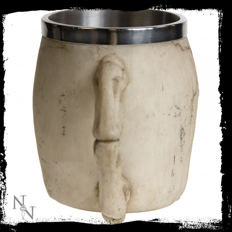 Půllitr z pryskyřice s lebkou. Nerezový střed lze vyndat a umýt v myčce.